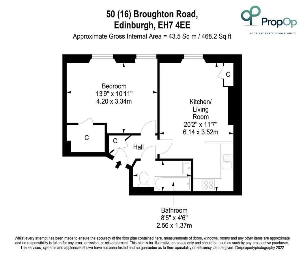 Beautifully presented, one-bedroom, third (top) floor flat, forming part of a traditional stone-built tenement. Conveniently located in the vibrant and fashionable area of Broughton, just to the north of Edinburgh city centre. The entrance hall has a small storage cupboard as you walk in, and provides access to each room within the property. The southerly facing living room has wood effect flooring extending from the hall, a central light fitting and a storage cupboard. Set off the living room, with a full-height glass partitioned wall, the kitchen is fitted with modern units and worktops, a tiled surround, a stainless steel sink, an integrated oven, electric hob and fridge. The generously sized bedroom has two windows allowing plenty of natural light, fitted storage, carpeted flooring, a pendant light fitting and a box room. Completing the accommodation, the stylish bathroom is fitted with a three-piece suite with a mains mixer shower over the bath, tiled splash walls and a ladder-style radiator.In addition, a key-pad secure entry system, gas central heating, a shared garden and zoned on-street parking to the front and the surrounding streets.Broughton is a fashionable and sought-after area of Edinburgh's city centre. Located adjacent to the iconic New Town, Stockbridge and the bustling east end, there is a range of impressive period buildings, crescents, cobbled streets and charming historic details. Vibrant Broughton Street and nearby Stockbridge provide a range of quality independent retailers including butchers, fishmongers, cafes, restaurants, and bars; whilst supermarket shopping is provided by a Tesco at Canonmills. The newly completed St James Quarter is also within easy reach, with its wide range of retail, lifestyle, and leisure facilities on offer, with many more in planning. Numerous parks provide eclectic green spaces including King George V Park, Inverleith Park and the renowned Royal Botanic Gardens. All the attractions of Edinburgh city centre can be reached on foot, whilst bus services are available from Broughton Street and Broughton Road.