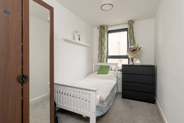 - Second bedroom with single bed, carpeted flooring and wardrobe