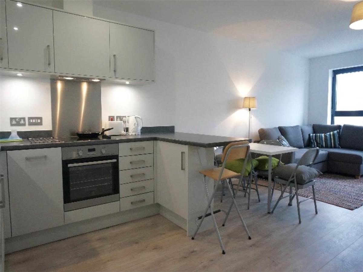 The property comprises of spacious open plan living room and kitchen with breakfast bar, 2 double bedrooms, master with en-suite shower, and main bathroom with shower. Additional features include double glazing, electric central heating, lift and entry phone access.