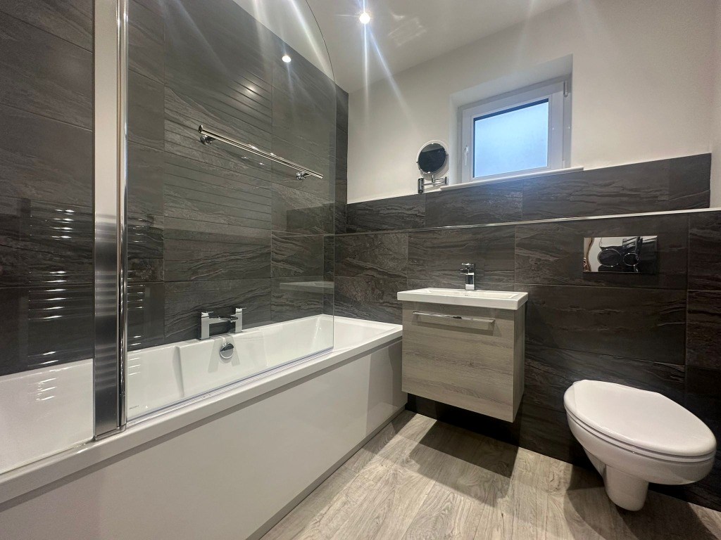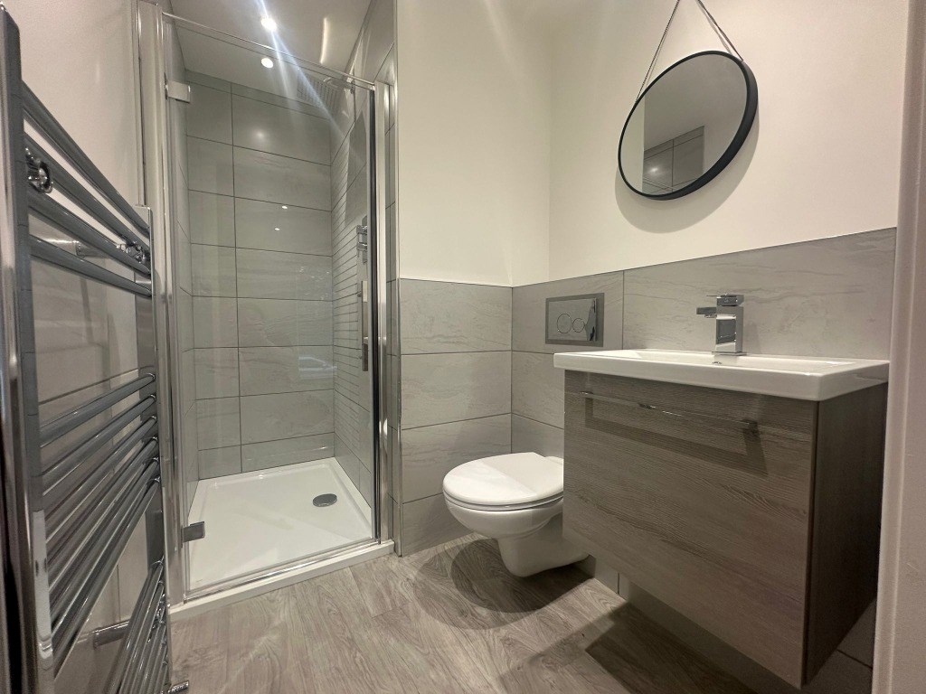 The apartment includes a family bathroom as well as an en-suite shower room to the principal bedroom, offering both comfort and convenience. A modern electric ventilation system helps maintain a fresh and energy-efficient home environment.