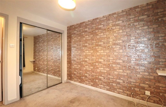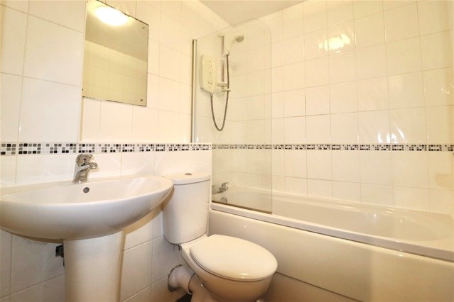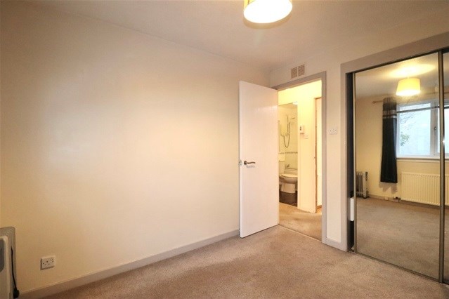 The bathroom is fitted with a white three-piece suite and features an electric shower over the bath. The double bedroom benefits from mirrored fitted wardrobes, offering excellent storage.