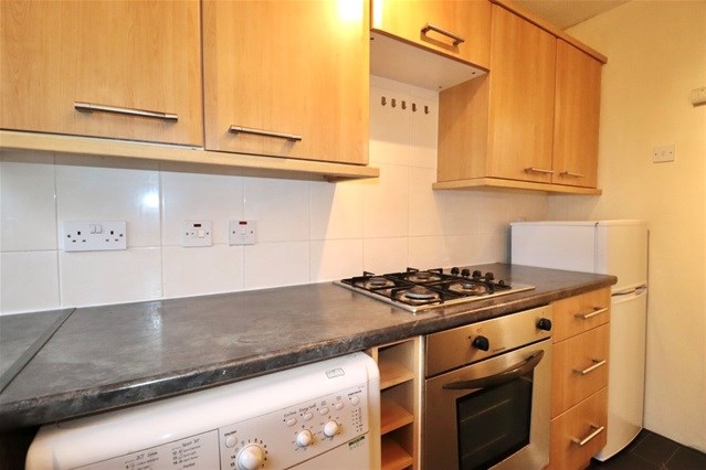 The property comprises an entrance vestibule leading into a bright and welcoming lounge with attractive wooden flooring and ample space for a dining area. The fully fitted kitchen includes a washing machine, fridge/freezer, and integrated gas hob and oven, providing everything needed for convenient day-to-day living.