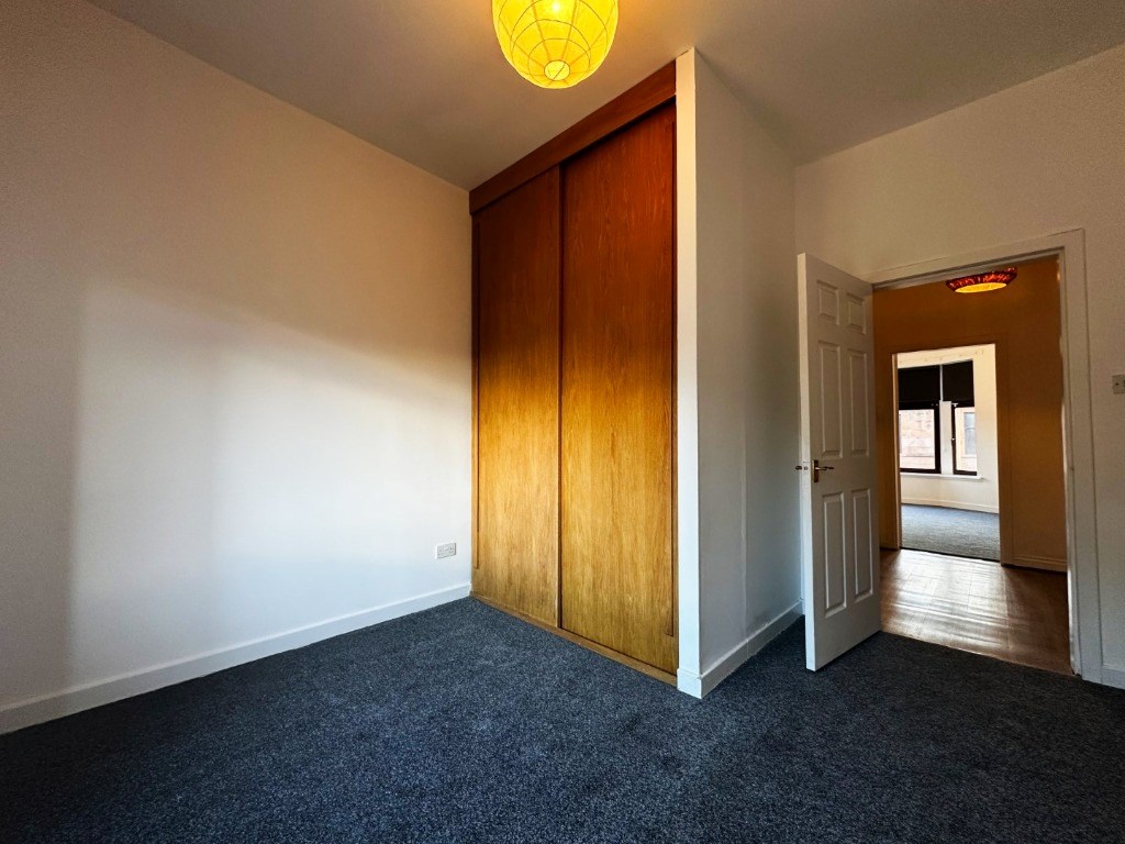 Good sized bedroom with built in floor-to-ceiling storage and new carpet