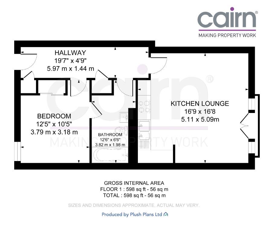 The accommodation comprises of reception hallway with two storage cupboards, bright open plan living room / kitchen with appliances including washing machine, fridge freezer, gas hob and electric oven and dishwasher, one double bedroom with fitted wardrobes and family sized bathroom with mains powered shower over the bath.