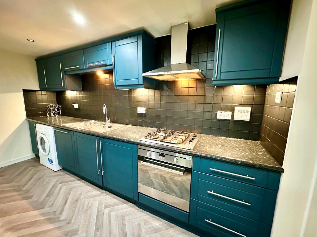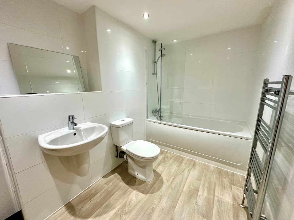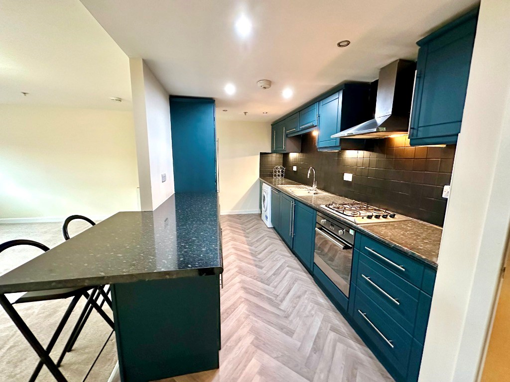 The accommodation comprises reception hallway with two storage cupboards, spacious open plan lounge/kitchen/dining area which comes complete with appliances including fridge freezer, dishwasher, washing machine, gas hob and electric oven, one double bedroom with fitted wardrobes and internal bathroom with white bathroom suite and mains powered shower over the bath.