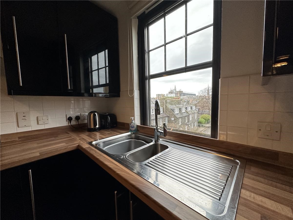 Situated in a prime residential location of the city we offer for lease this modern two bedroom top floor flat. Located on the top floor of a traditional granite building the property offers stunning views across the Aberdeen skyline from the feature window in the lounge. The property is well presented and furnished to a high standard throughout and benefits from double glazing, electric heating, security entry and an internal lift. The accommodation comprises hallway with storage, large lounge with feature window, modern kitchen, two double bedrooms with built-in storage and modern bathroom.