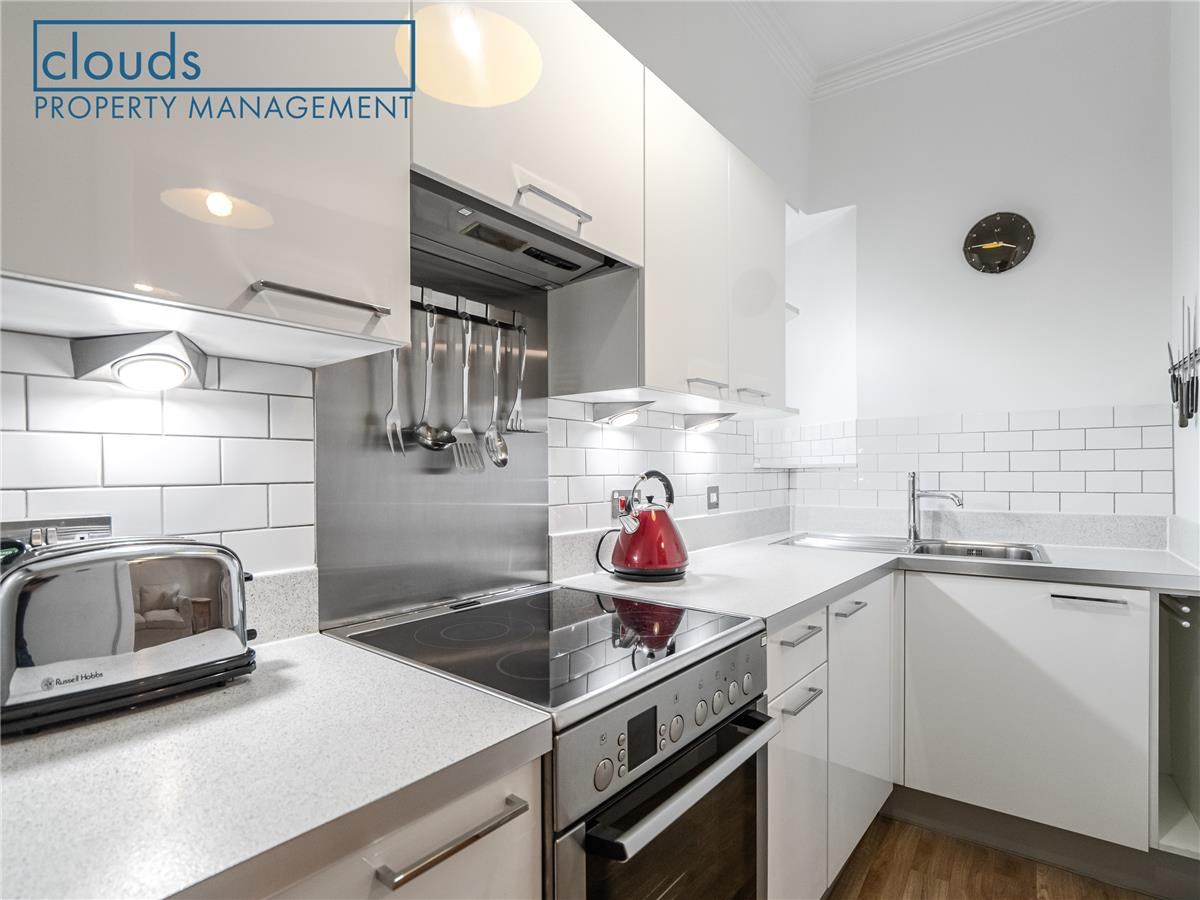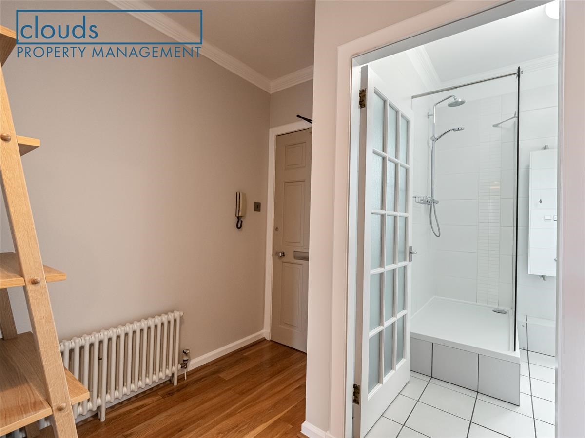 The flat also includes a well-appointed bedroom and a bright, contemporary bathroom, complemented by a functional kitchen designed for everyday living. Original features blend seamlessly with modern touches, giving the flat a unique charm while providing all the conveniences of city living.