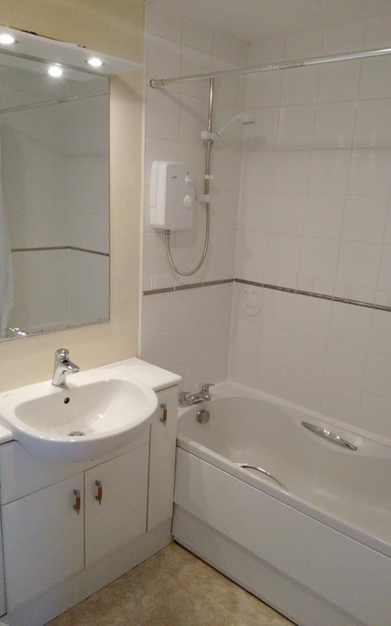Hall with storage cupboard, Lounge and Kitchen on open plan, Master bedroom with built in wardrobe and en-suite shower room, Large bedroom with built in wardrobe, Bathroom with shower over the bath,