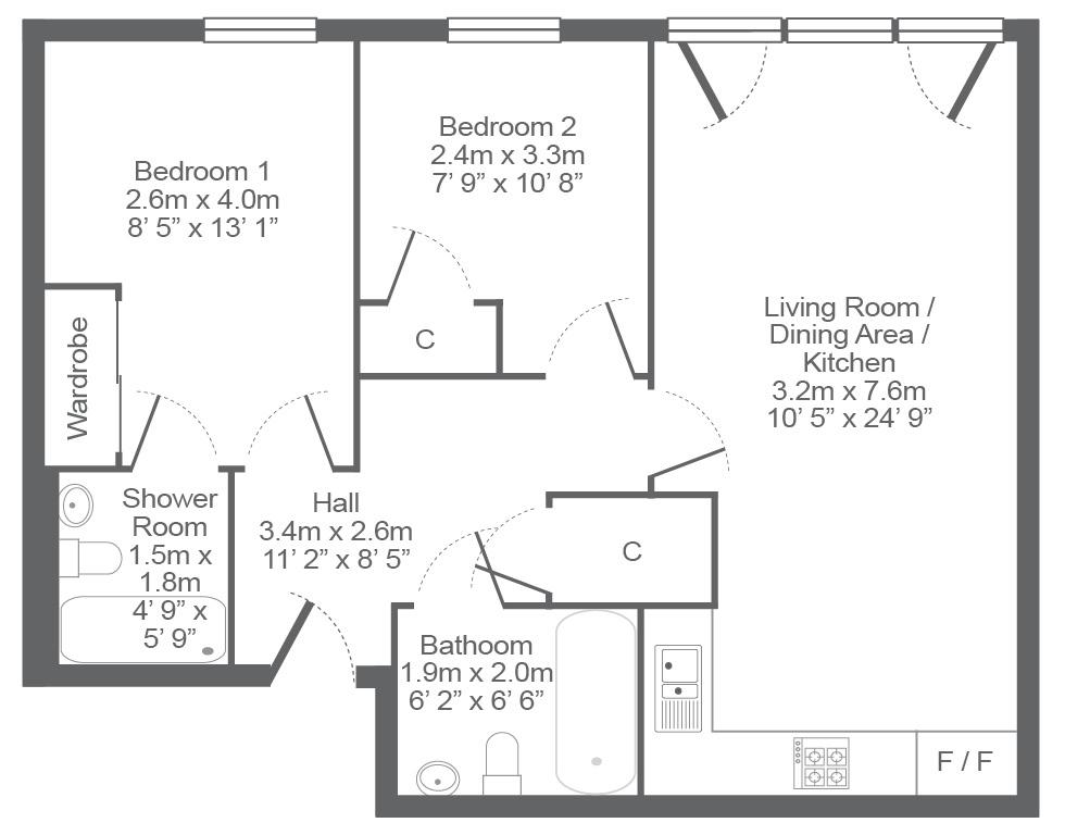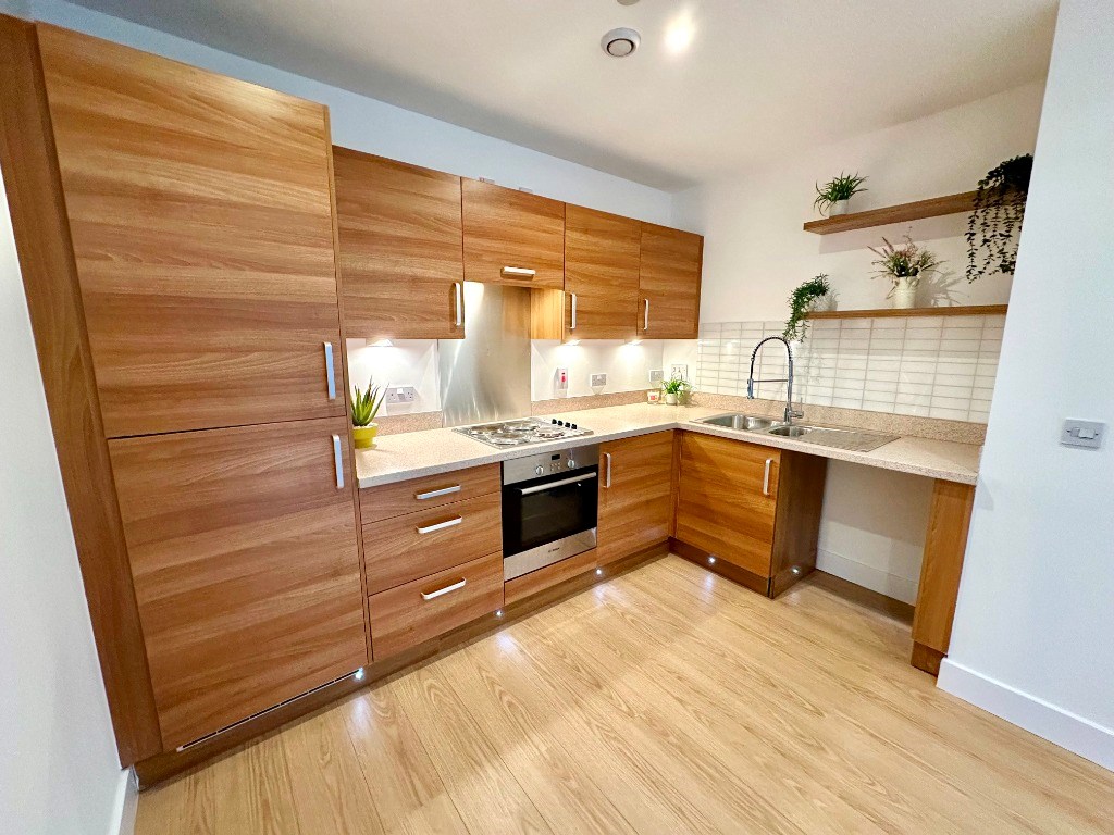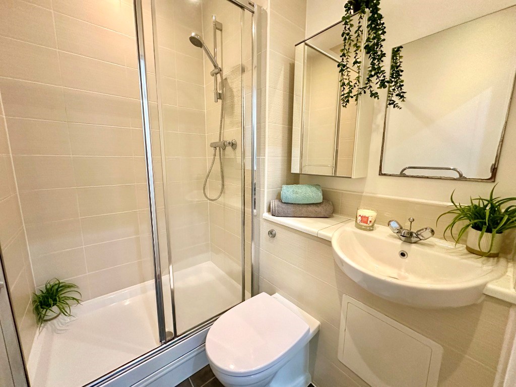 Internally the property has been freshly redecorated throughout and comprises of a welcoming hallway with large storage cupboard, spacious open plan living room / dining area / kitchen which features an electric Living Flame fire, a modern fitted kitchen with ample storage and appliances including full sized fridge freezer, washing machine, electric hob and electric oven. There are two double bedrooms, the master bedroom boasting an en-suite shower room and built in wardrobes. Finally, the family bathroom with white three piece bathroom suite and mains powered shower over the bath that completes the accommodation.