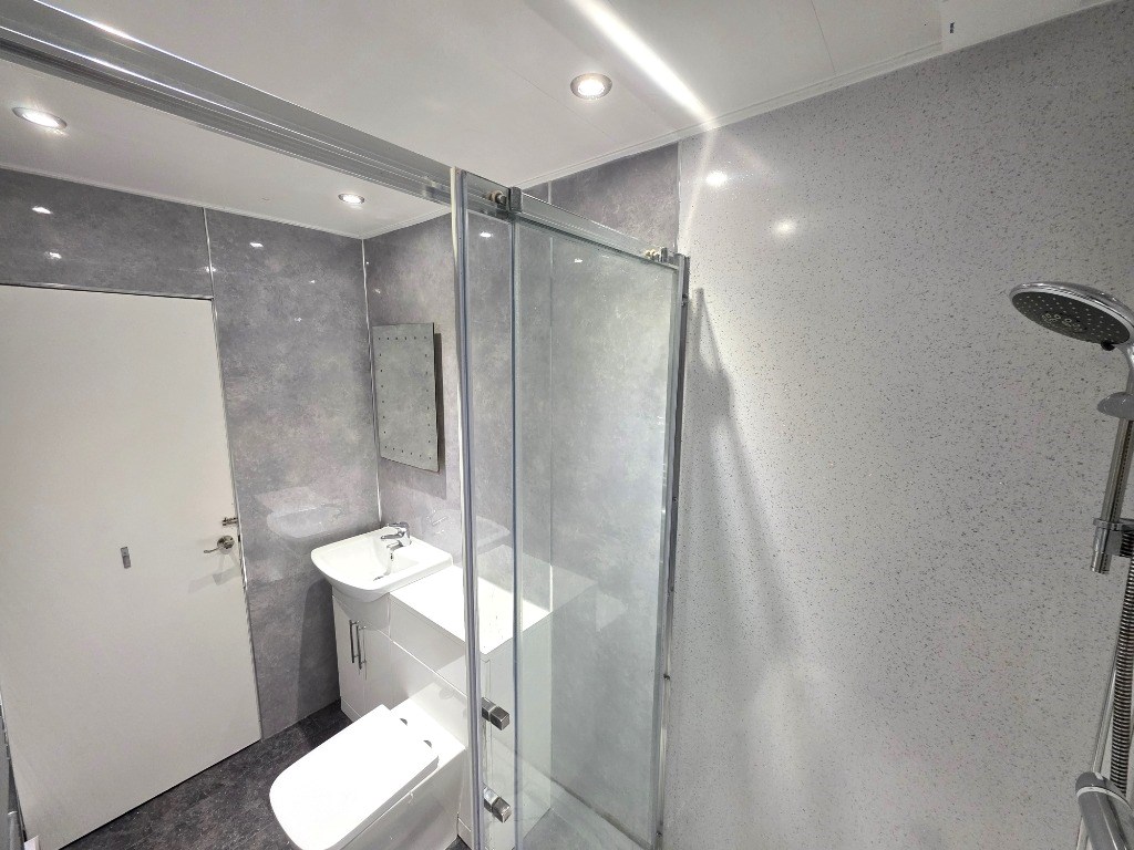 Double bedroom with built in storage: Spacious lounge with dining area: Kitchen with ample storage: Modern shower room: Hall with storage.