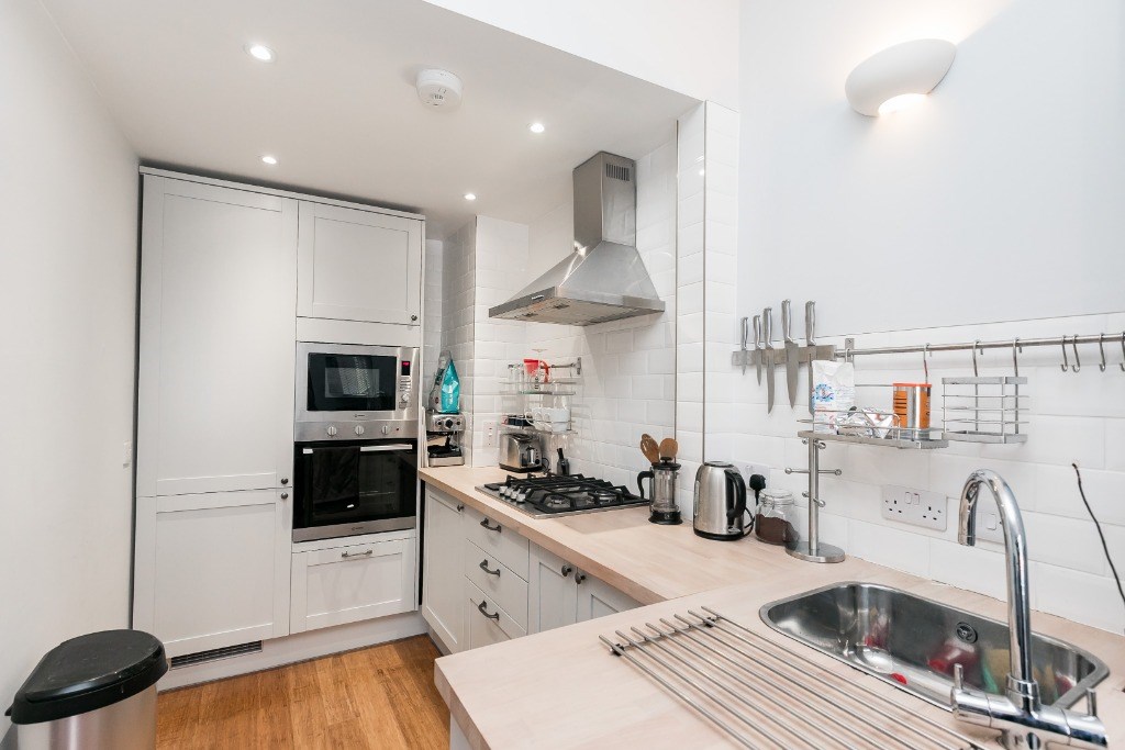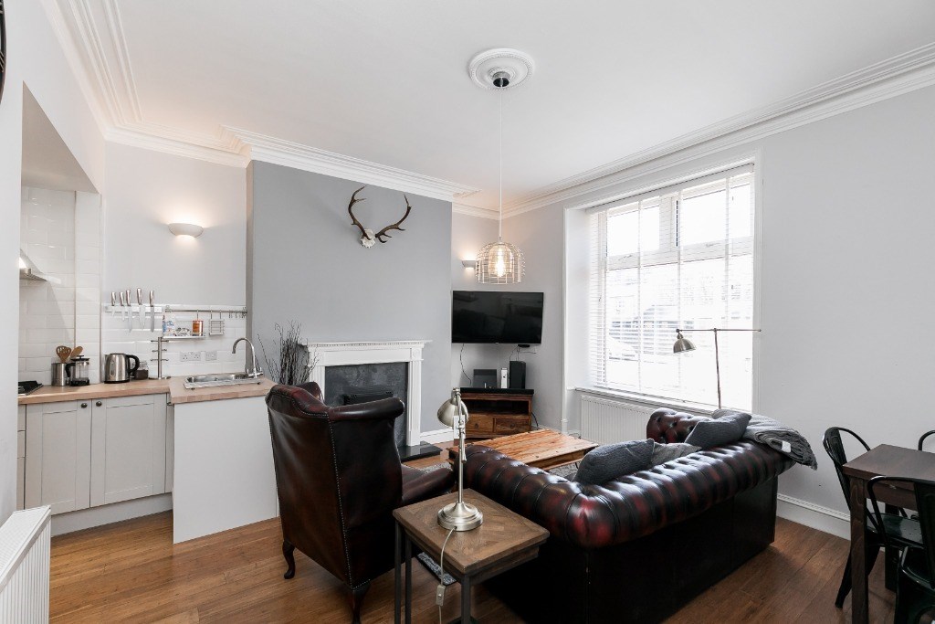 Accommodation comprises of: stunning open plan kitchen and living space with a great combination of a modern feel and original features, and a kitchen with a range of storage and appliances; good sized double bedroom with extensive built-in storage; stylish shower room with white suite and large shower enclosure.
