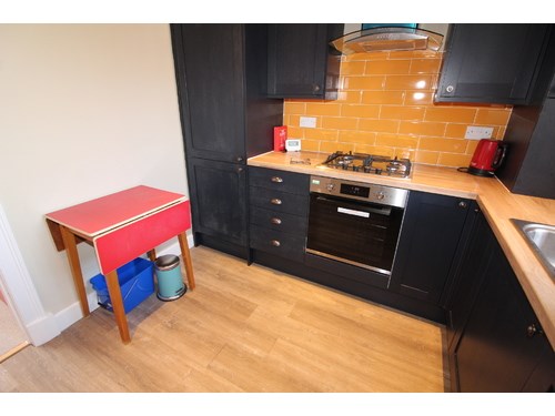 Hallway through to fully fitted modern kitchen with dishwasher , oven and hob , chimney type extractor and free standing fridge freezer. Outside there is a well maintained garden area and permit parking would be available on application.