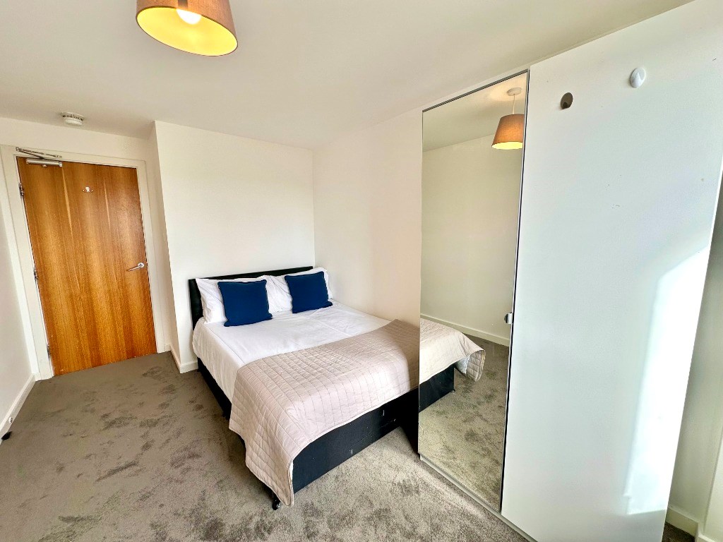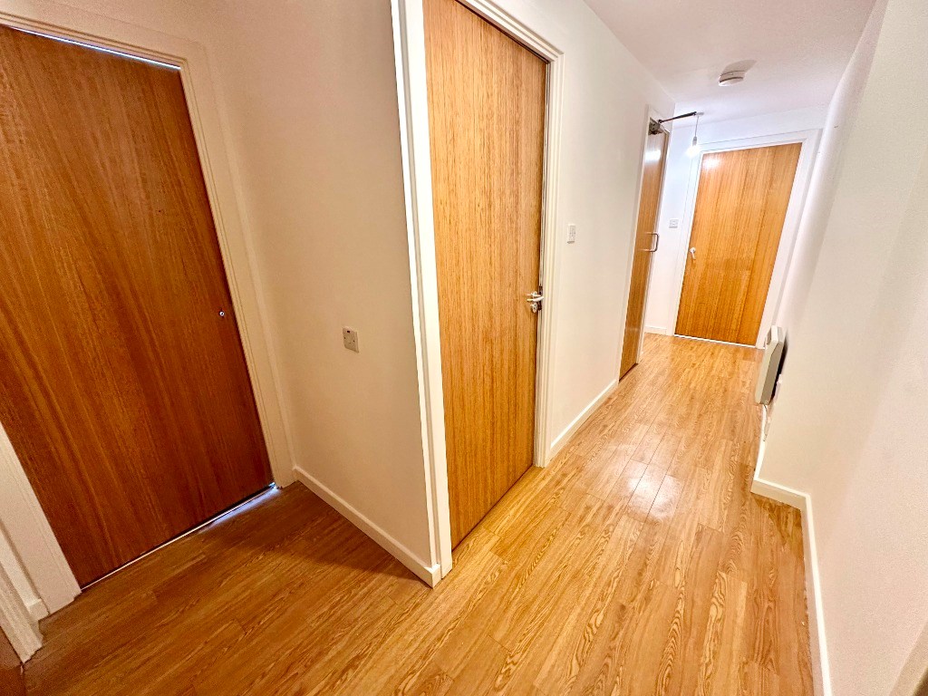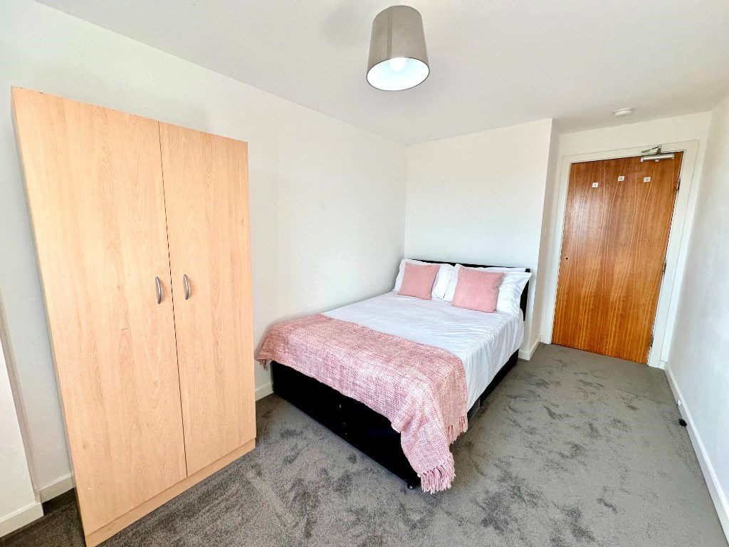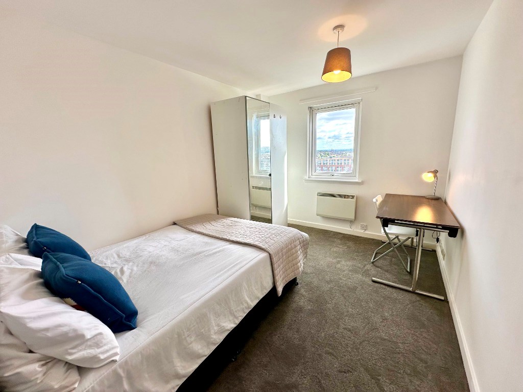 The building is entered into via a secure fob entry system and there are stairs and a lift to take you to the eleventh floor. Internally the property comprises of reception hallway with two storage cupboards, an internal main bathroom with white three piece bathroom suite and electric shower over the bath, spacious and bright open plan living room / dining room / kitchen which comes complete with appliances including fridge freezer, washing machine, ceramic hob and electric oven and finally three double sized bedrooms, one of which has an en-suite shower room.