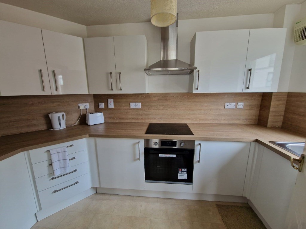 Situated on the first floor, there’s a bright lounge area with ample space for lounge furniture and a dining area. The kitchen is well equipped with the usual appliances including an electric cooker and hob, fridge, mini dishwasher and washing machine. There is a bathroom with an overhead electric shower. There are two double bedrooms each with fitted wardrobes. Large hallway cupboard perfect for storage. ECH & DG throughout. Viewing is highly recommended to appreciate this delightful property. Available immediately. EPC rating: C. Landlord Registration Number: 443417/100/11471.