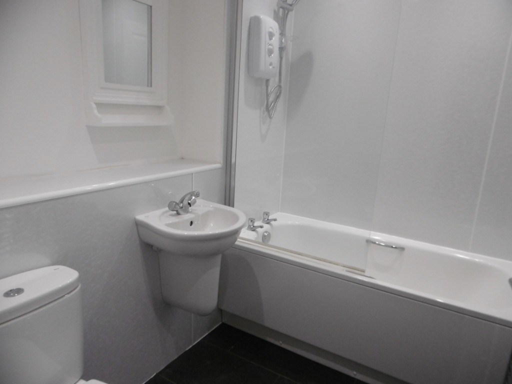 Bathroom: bathroom fitted with a contemporary suite comprising: W.C ; wash hand basin; bath complete shower.