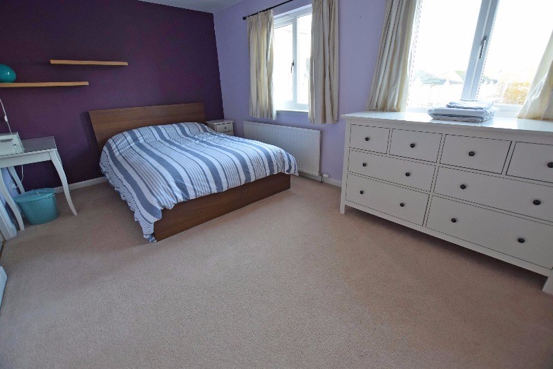 MASTER BEDROOM – Large bright and airy double room with dual aspect windows overlooking the front of the property. Two built-in wardrobes with mirror sliding doors, provide excellent storage facilities. Carpeted. TV point; telephone point. Radiator. Door to EN SUITE SHOWER ROOM with white suite and large shower cubicle. Wash hand basin built into vanity unit for extra storage. Radiator.