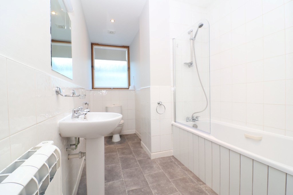 Internally the property comprises of a hallway with storage, spacious living room, with ample room for dining and that is open plan to a fully fitted and integrated kitchen. There are two good sized double bedrooms, master with en-suite shower room and both benefitting from built in wardrobes. An internal bathroom with three piece white suite with shower over the bath completes the accommodation.