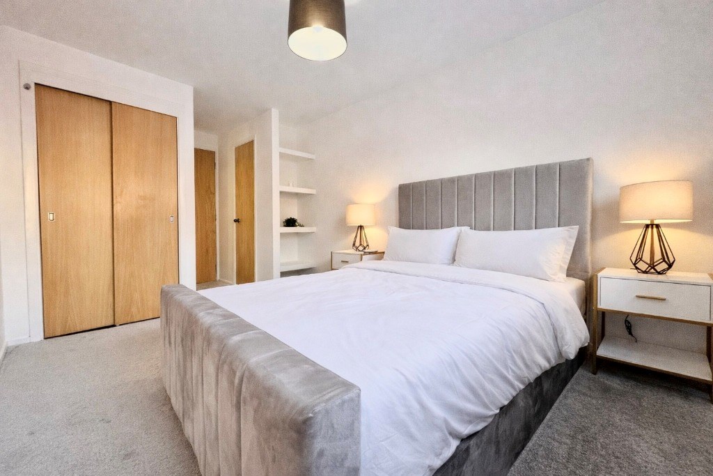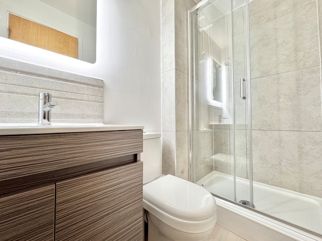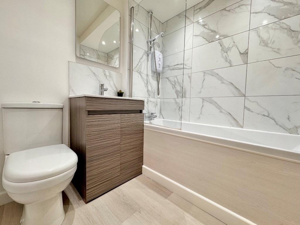 There are two well-sized double bedrooms, including a master with its own en suite shower room. A separate contemporary bathroom serves the second bedroom and guests. Both bathrooms are finished to a high standard with clean, modern design.