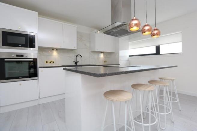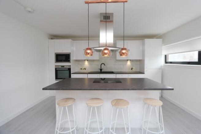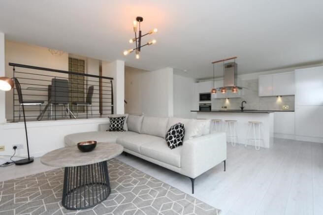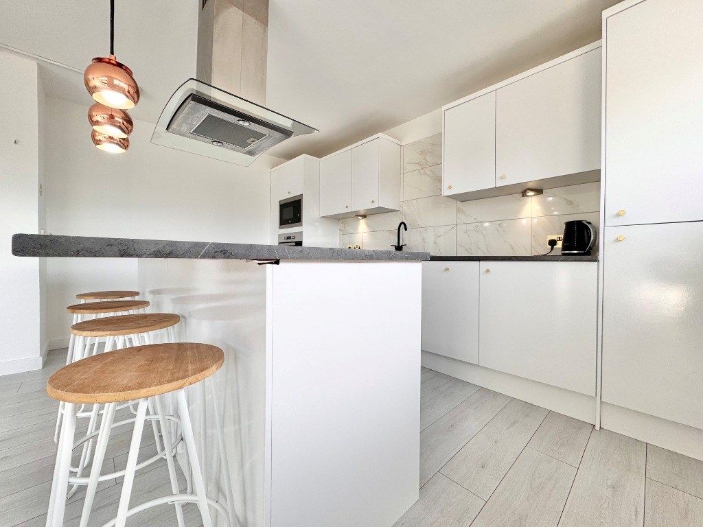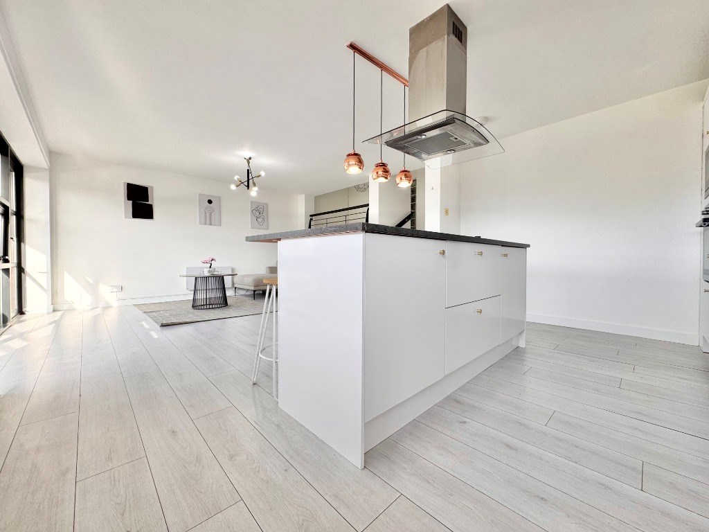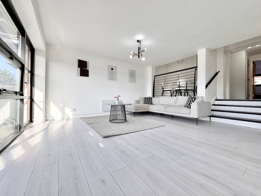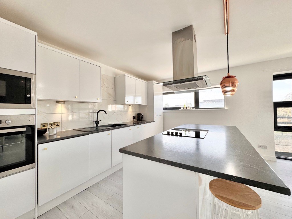 The property features a bright and generously proportioned open-plan living and kitchen area, perfect for both relaxing and entertaining. The kitchen is fully fitted with integrated appliances and sleek modern finishes, complemented by ample space for dining. Large windows throughout allow lots of natural light, creating a warm and welcoming atmosphere.