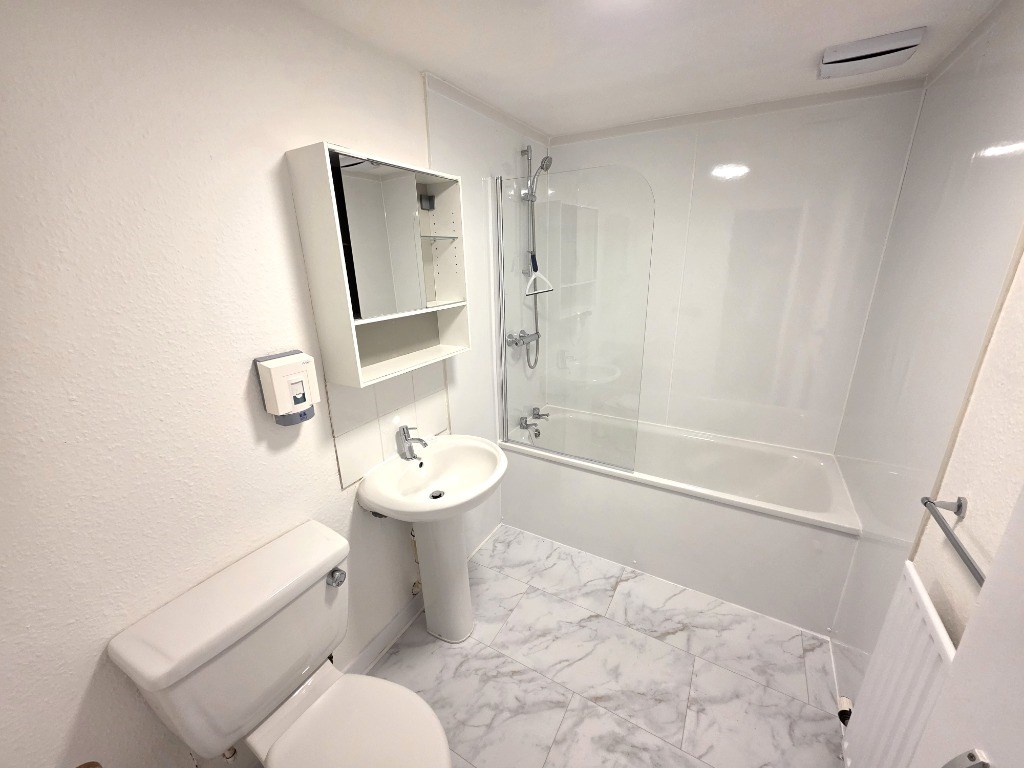 Accommodation comprises of: Open plan kitchen living space with space for dining, including a well equipped kitchen and plenty storage; 2 good sized double bedrooms with storage provided; modern bathroom with white suite and shower over aqua panelled bath area.