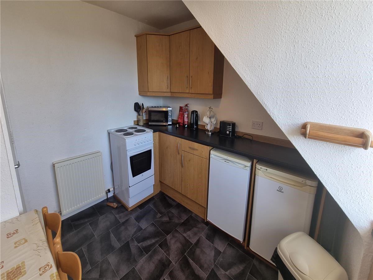 This property, situated in the City Centre area and located on the top floor, comprises of an Entrance Hallway; a Lounge which looks over Dee Place, Kitchen with cupboard space; Cooker, Fridge, Freezer, Microwave, Washing Machine, Kettle, Toaster. The Kitchen is also complete with dining table & chairs. There is also a double bedroom, complete with storage space. The bathroom with shower over the bath completes the living accommodation on offer.