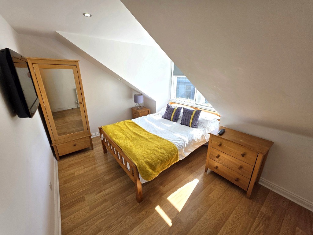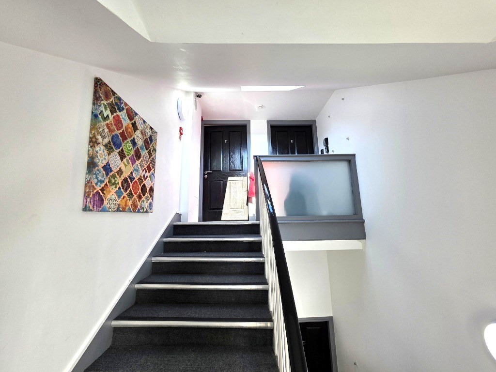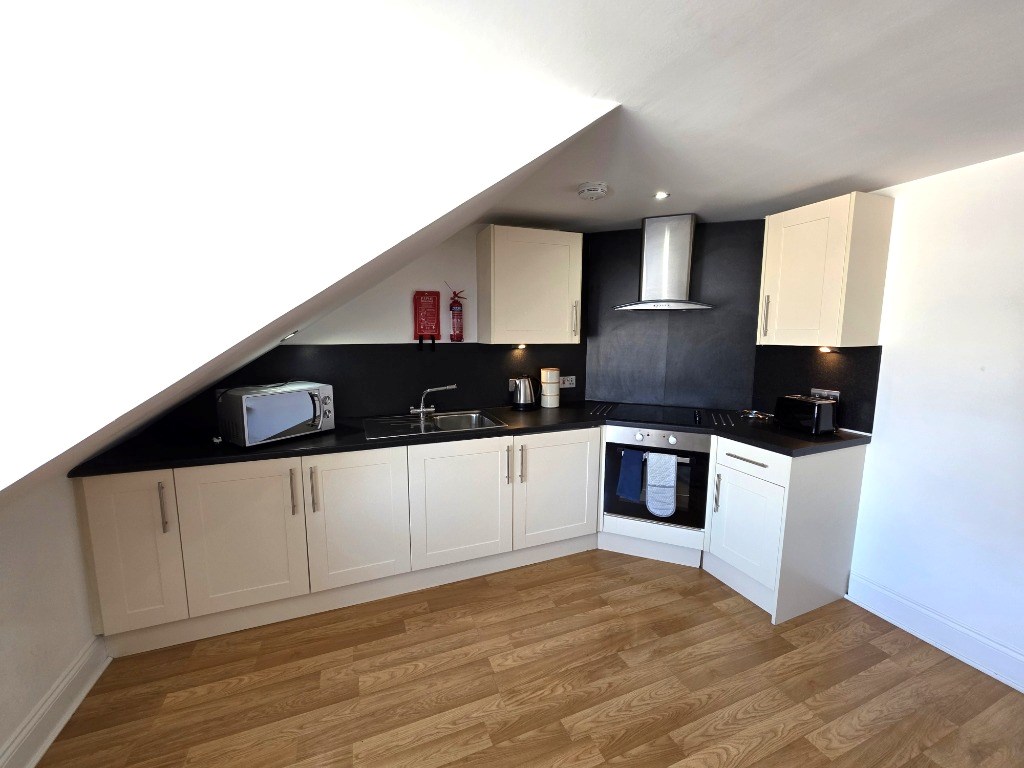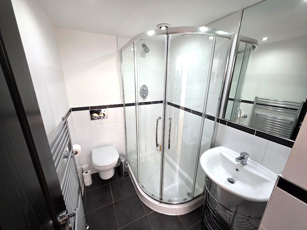 Spacious, open plan, kitchen living dining room: Modern shower room: Double bedroom with storage: Hall