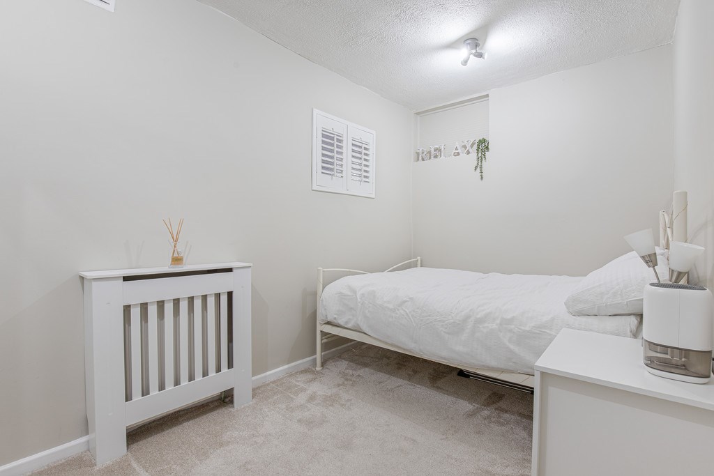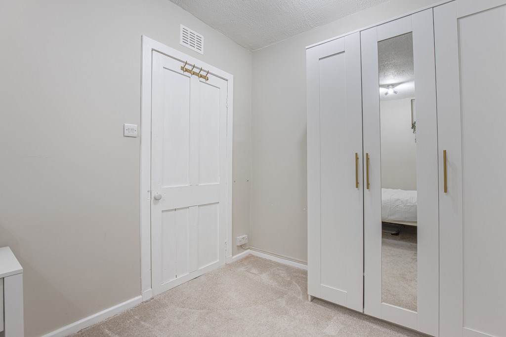 BEDROOM 2 The second bedroom is bright and neatly presented, featuring soft neutral décor and plush carpeting that creates a cosy and inviting feel. It comfortably accommodates a double bed and additional furniture, making it ideal as a guest room, bedroom, or home office. A fitted wardrobe provides excellent storage, while the calm colour palette enhances the sense of space and light.