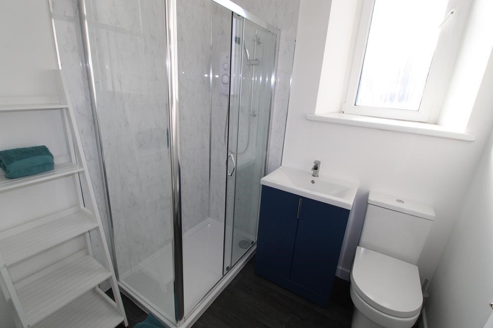 Hallway with storage cupboard, Lounge/Dining Area with electric fireplace, Kitchen off Lounge, Double Bedroom with built in wardrobes, Single Bedroom with free standing wardrobe, Large Double Bedroom with free standing wardrobes & bay window, Double Bedroom, Modern Bathroom with electric shower over bath
