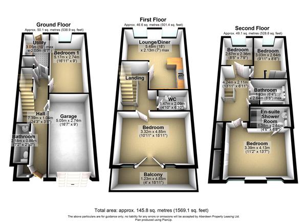 2nd Floor - Double Bedroom with built-in wardrobes & En-Suite Shower Room, 2nd Double Bedroom with built-in wardrobes, Bedroom with free-standing wardrobe, Storage cupboard, Bathroom with shower over bath.