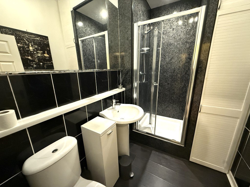 The accommodation comprises: Large lounge space with high ceilings and plenty light; spacious dining kitchen with plenty wall and floor units for excellent storage, along with appliances; good sized double bedroom with storage provided; shower room with white suite and big shower enclosure.