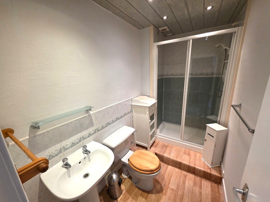 Spacious double bedroom: Bathroom with shower over bath: Hall: Living room with dining area: Kitchen with ample storage.