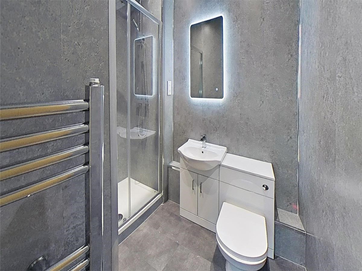 The accommodation features three well-proportioned double bedrooms, including a principal suite with integrated wardrobes and a private en-suite shower room. The additional bedrooms are impressively sized, offering ample space for free-standing furniture, while a contemporary three-piece bathroom completes the interior.