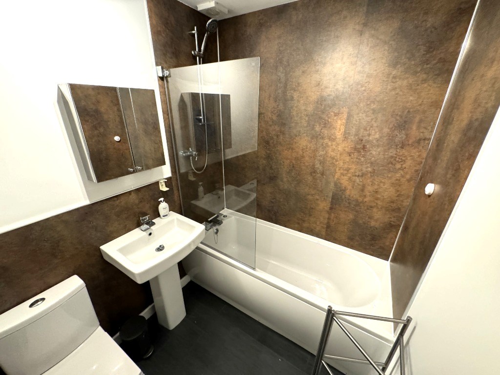 The internal accommodation is well presented in neutral tones throughout and comprises: Spacious lounge with space for dining, and the large front facing window making for a bright living space; modern kitchen with floor and wall units for storage, appliances, and a breakfasting bar; great sized double bedroom with large built in storage; modern bathroom with white suite, including shower over bath; further large storage cupboard in hallway.