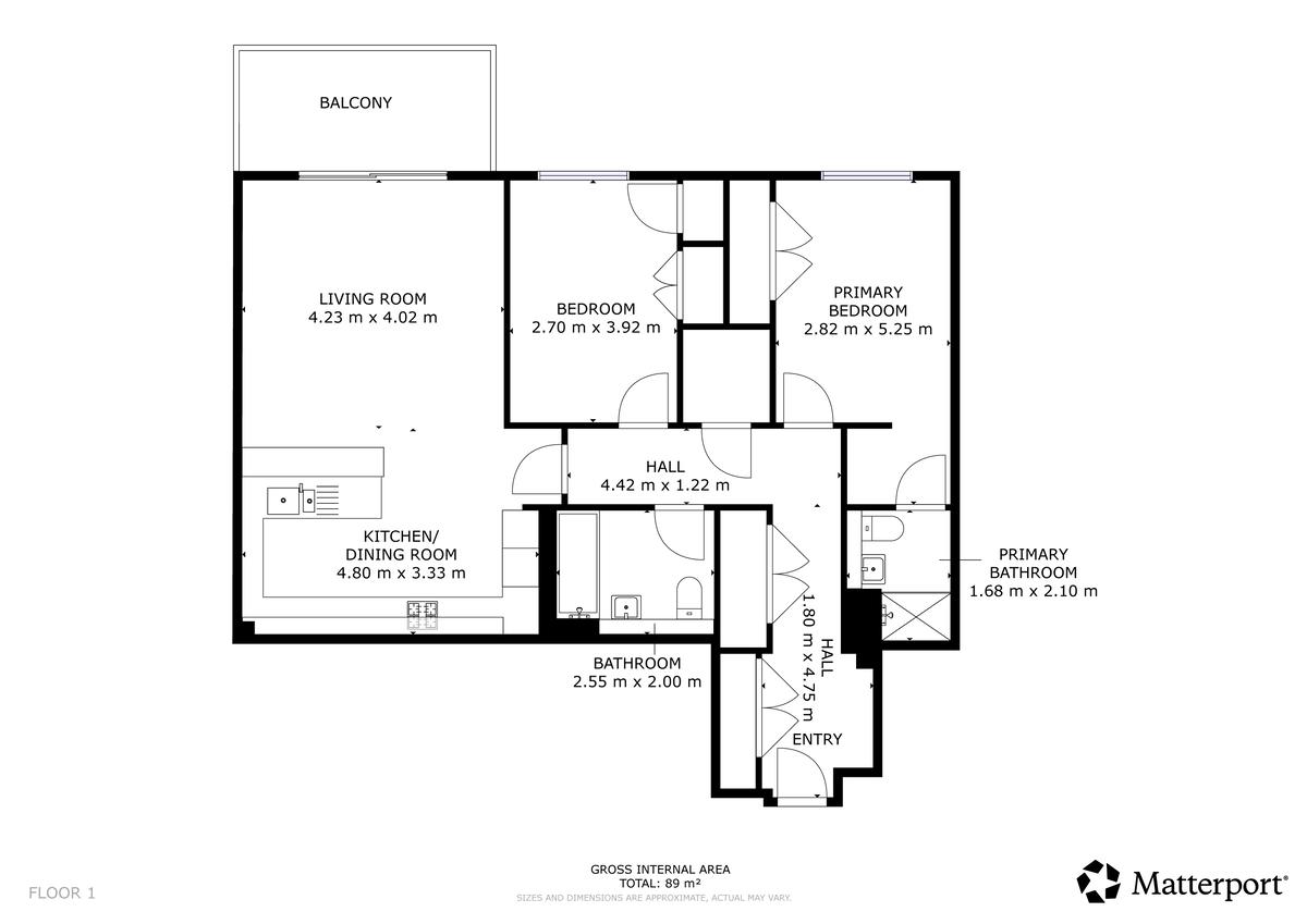 BEDROOM 2 The second bedroom is a bright and versatile space, presented unfurnished and finished in neutral tones to suit any style. A large window allows natural light to fill the room, creating a pleasant and airy atmosphere. The room offers generous proportions and includes a built-in wardrobe with modern doors, providing convenient storage without compromising floor space. It's ideal for use as a guest bedroom, home office, or children's room, offering flexibility to meet a variety of lifestyle needs. With its simple décor and practical layout, this second bedroom complements the modern design and comfort of the apartment.