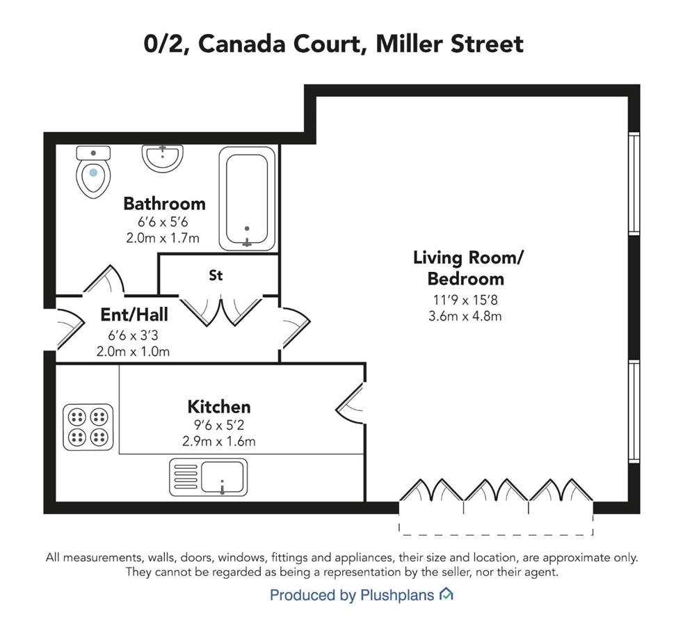 This well presented and modern studio flat is situated in the heart of Merchant City, Glasgow, within the converted Victorian Canada Court. The property offers a contemporary living space, ideal for individuals seeking convenience and style in a central location. The kitchen is stylishly finished and includes white goods including washing machine, fridge, built in oven and built in induction hob, making it both functional and visually appealing. The bathroom is well appointed, with white three piece bathroom suite with an electric shower for added comfort and practicality.