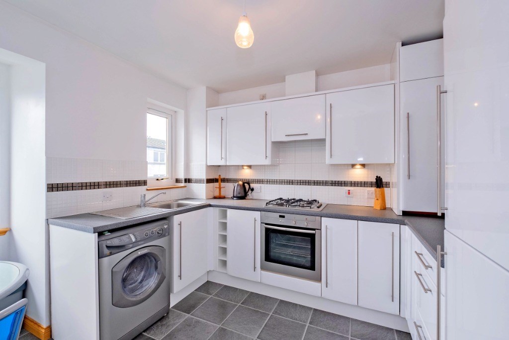 The property is situated on the Top Floor of a factored building and comprises; Entrance Hallway with storage cupboard; Lounge with sofa and arm chairs (Sofas will be different from the pictures), Fitted Kitchen with dining table and chairs, washer dryer, gas hob and integrated fridge/freezer. There are Two Double Bedrooms with built in storage and chest of drawers. There is also a Bathroom with shower over the bath.