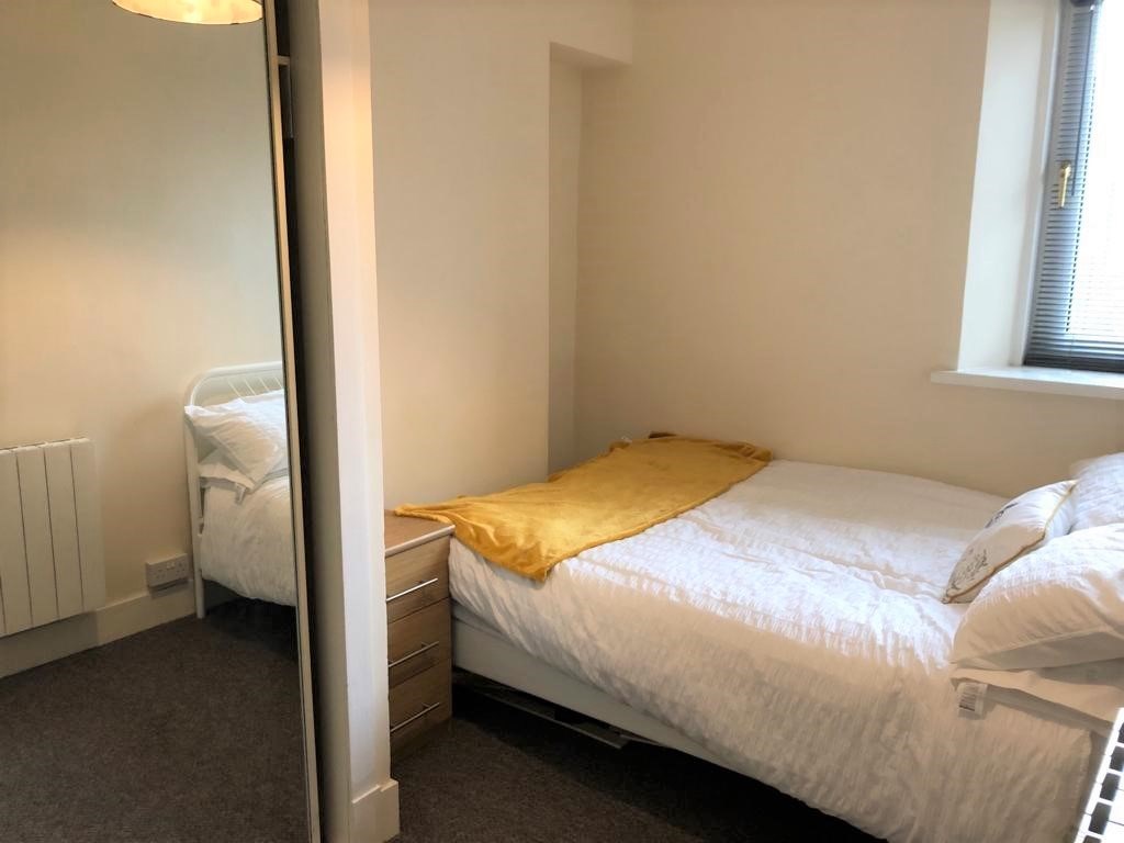 To the front of the property, there's a spacious lounge with feature fireplace & TV stand. Centrally located is the bathroom fitted with a white three piece suite & overhead electric shower. To the rear, there’s a double bedroom with double bed, fitted wardrobes & chest of drawers. Modern fitted kitchen with all the usual appliances including a fridge freezer, microwave, electric oven and hob. ECH & DG throughout. Shared garden to the rear. On street parking is available and viewing is highly recommended. EPC rating: E. Landlord Registration Number: 235301/100/04421.