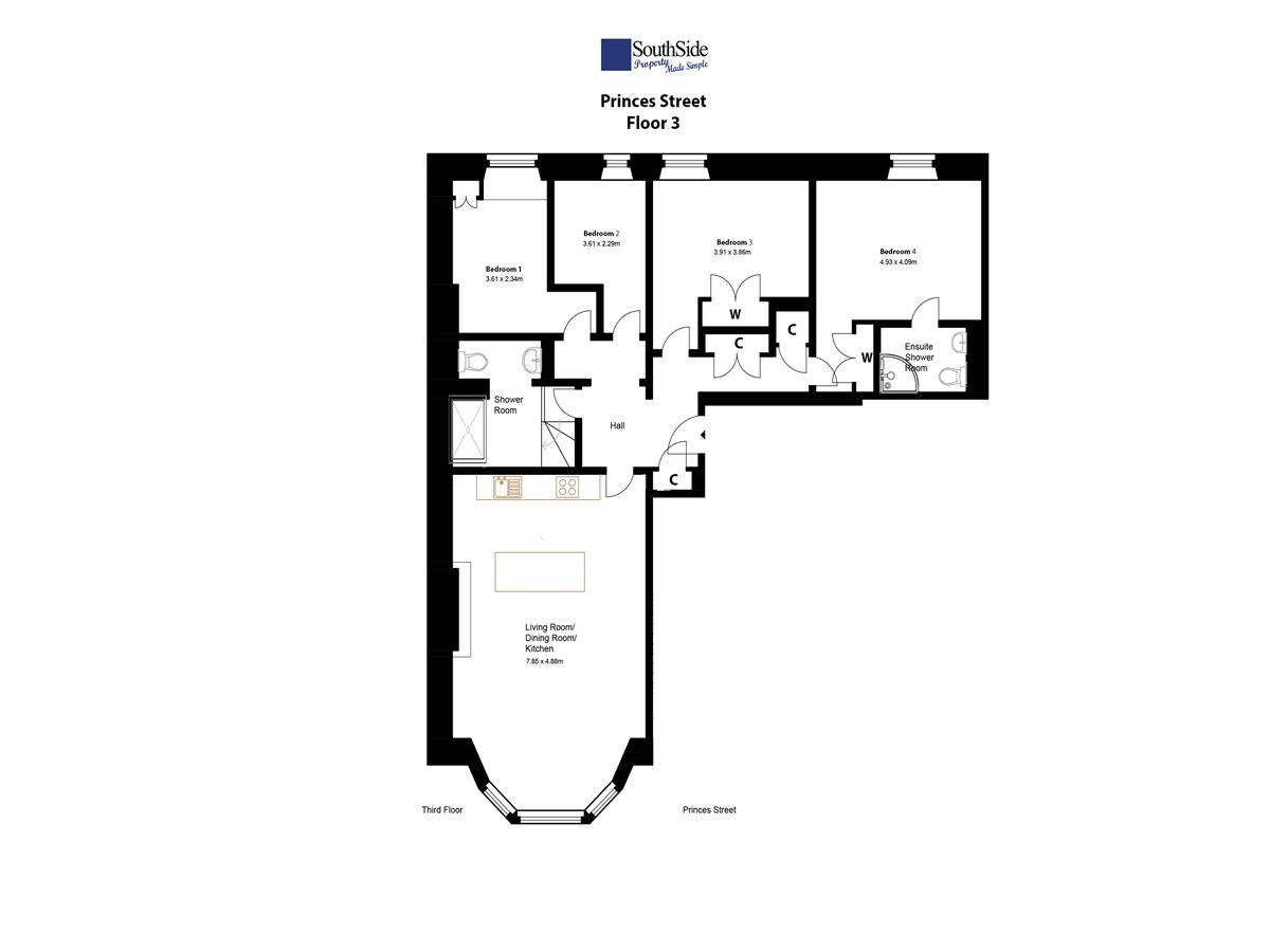INCREDIBLE opportunity to rent a stunning, 4 bedroom, 5 person HMO flat on Princes Street, the most central street in the heart of Edinburgh and just seconds away from all the amenities you could need. Princes Street Gardens is merely seconds away, there is quick access to the Royal Mile and Old Town via The Mound, and Lothian Road is a give minute stroll. The immediate area is host to a swathe of shops, restaurants and coffee shops and there are transport links available from the doorstep all over Edinburgh, via bus or tram, with Waverley railway station just five minutes away on foot.