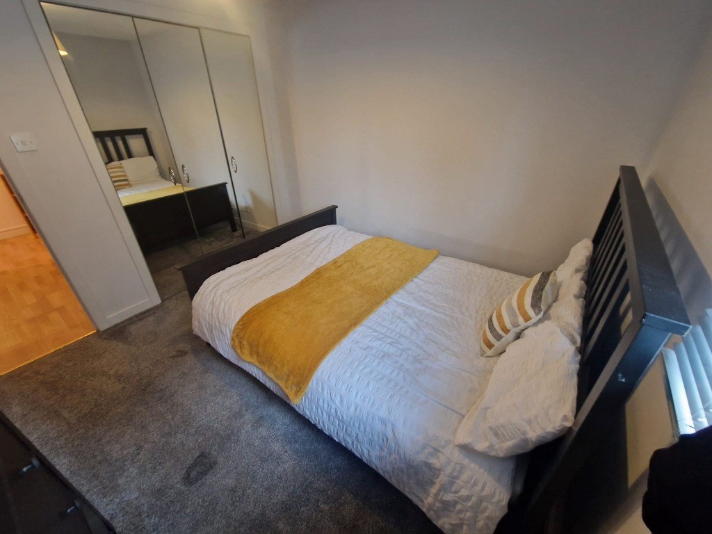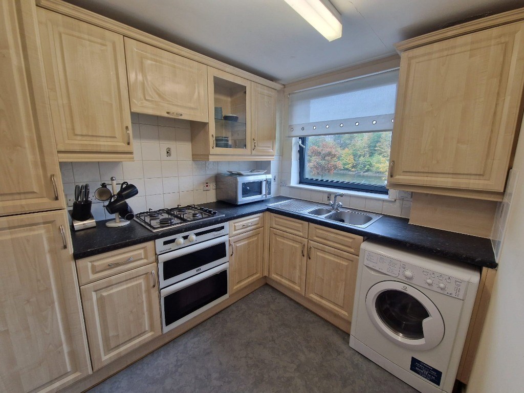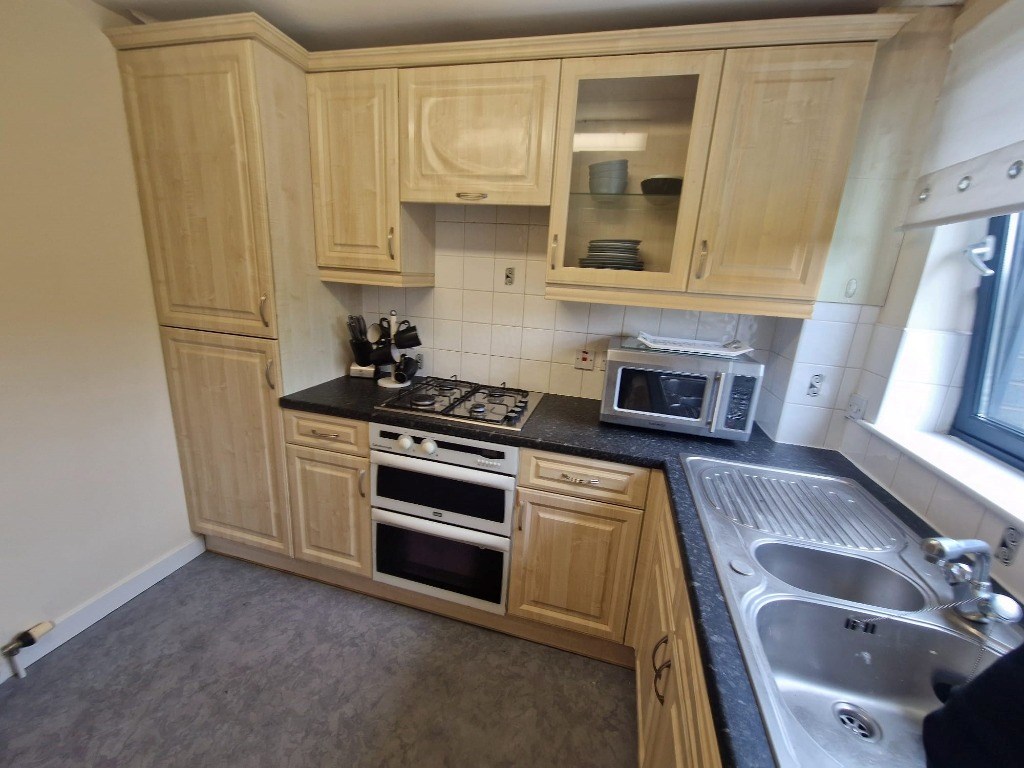 The generous lounge/dining is located to the front of the building with dual aspect windows and hard wood flooring. From the lounge you enter the spacious kitchen with light wood cupboards and black worktops. The kitchen is fitted with the usual appliances, washing machine/drier, oven and gas hob, fridge freezer and microwave. The lovely master bedroom has fitted wardrobes and ensuite shower room. The second double bedroom is spacious and light with mirrored fitted wardrobes and space for a chest of drawers. The main bathroom has a cream three piece suite and shower over the bath.