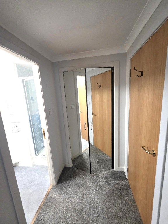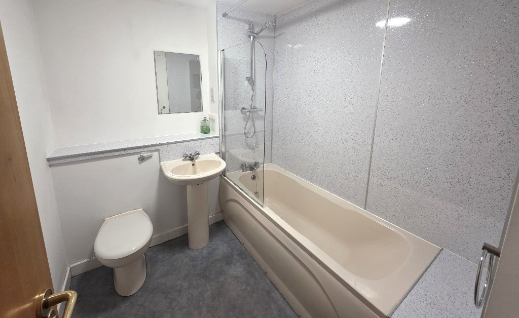 Accommodation comprises of: Large lounge space with double aspect windows allowing for plenty of light, along with space for dining; well equipped kitcxhen with a range of wall and floor units for great storage, along with appliances; 2 good sized double bedrooms with built in storage, and one with en suite shower room, including white suite and enclosed shower area; further bathroom with suite and shower over aqua panelled bath area; Outside there is development parking.