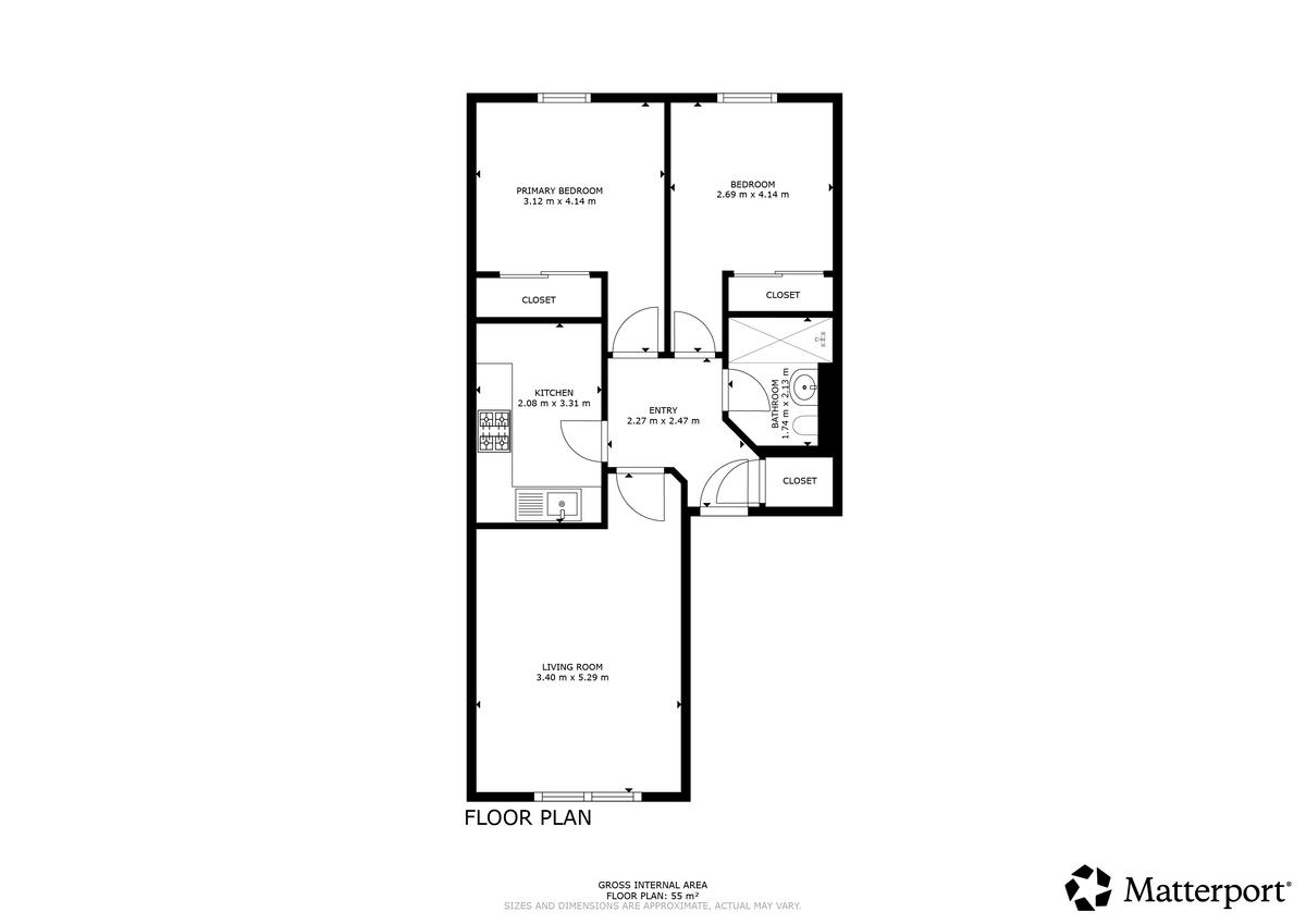 BATHROOM The bathroom for this property sits just next to the entrance and provides a brilliant blend of modern design with practical features. The bathrooms recent renovation is evident in its sleek look and contains a large glass mirror, toilet, sink area and a brilliantly sized walk-in shower that steals the show in this room.