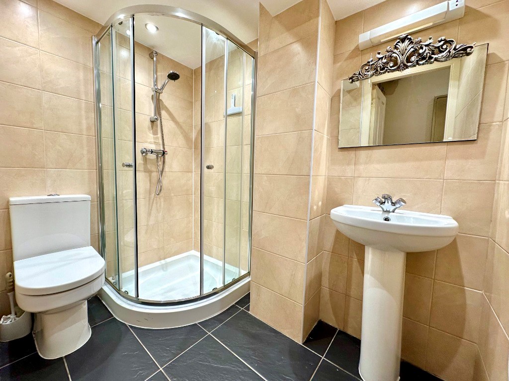 Off the hallway, you will find a spacious fully fitted kitchen with a range of base and wall units with space for dining and appliances including fridge freezer, washing machine, gas hob and electric oven, two large double bedrooms, master with feature fireplace and press cupboard and spacious lounge with feature fireplace and cupboard. The property is completed with two contemporary shower rooms.
