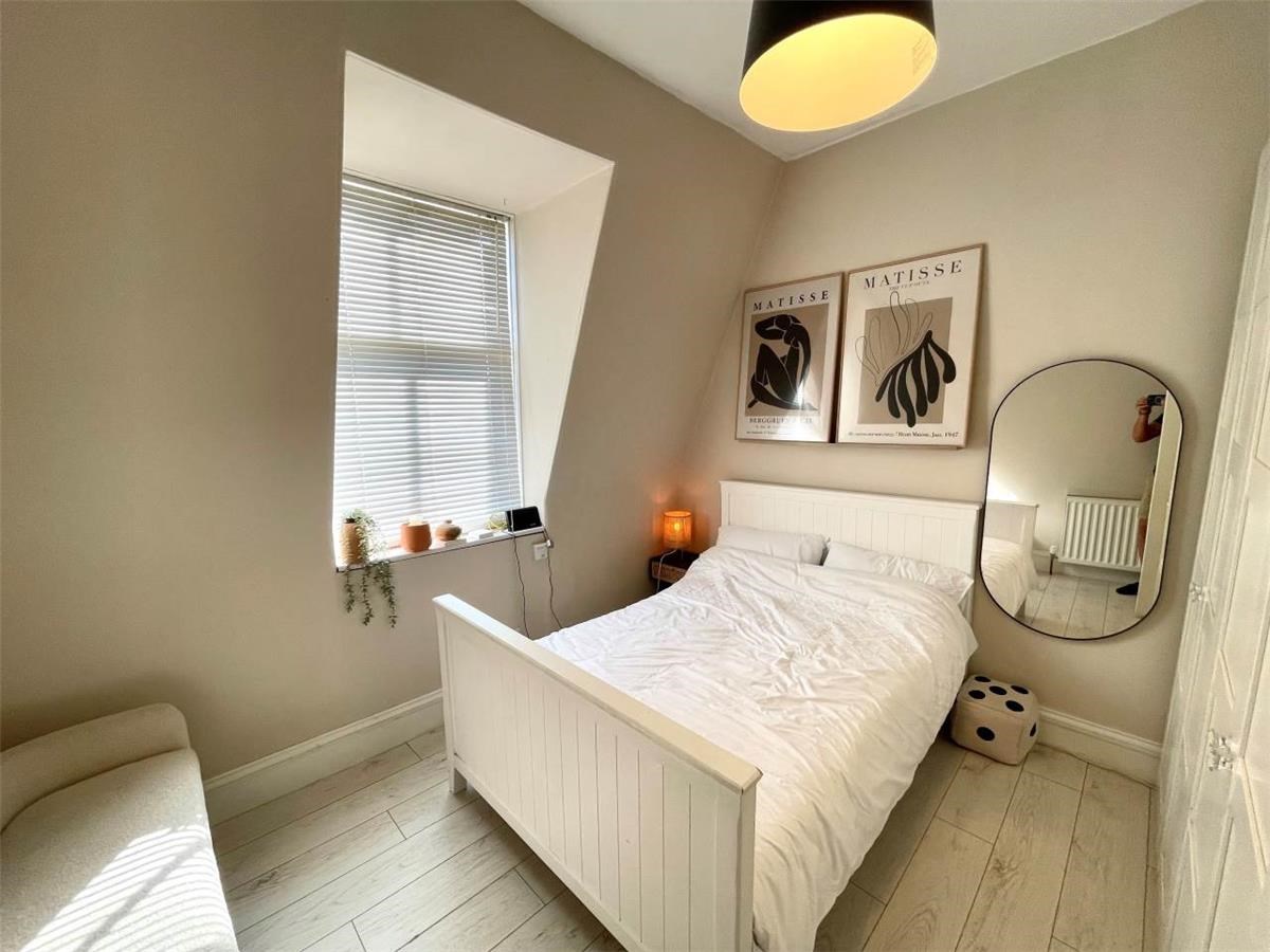 The bright master bedroom to the rear of the property includes large, fitted wardrobes, and the second bedroom could lend itself as a home office for flexible working or studying.