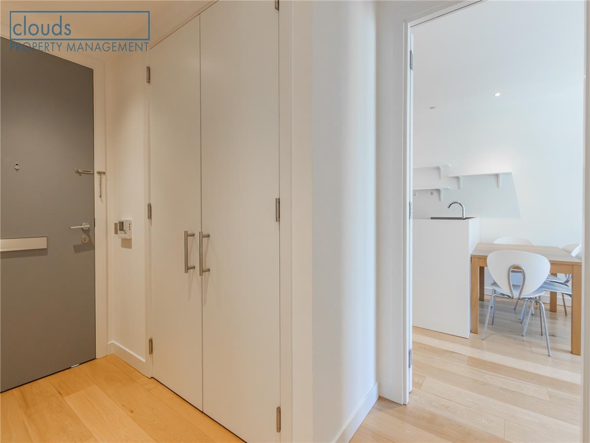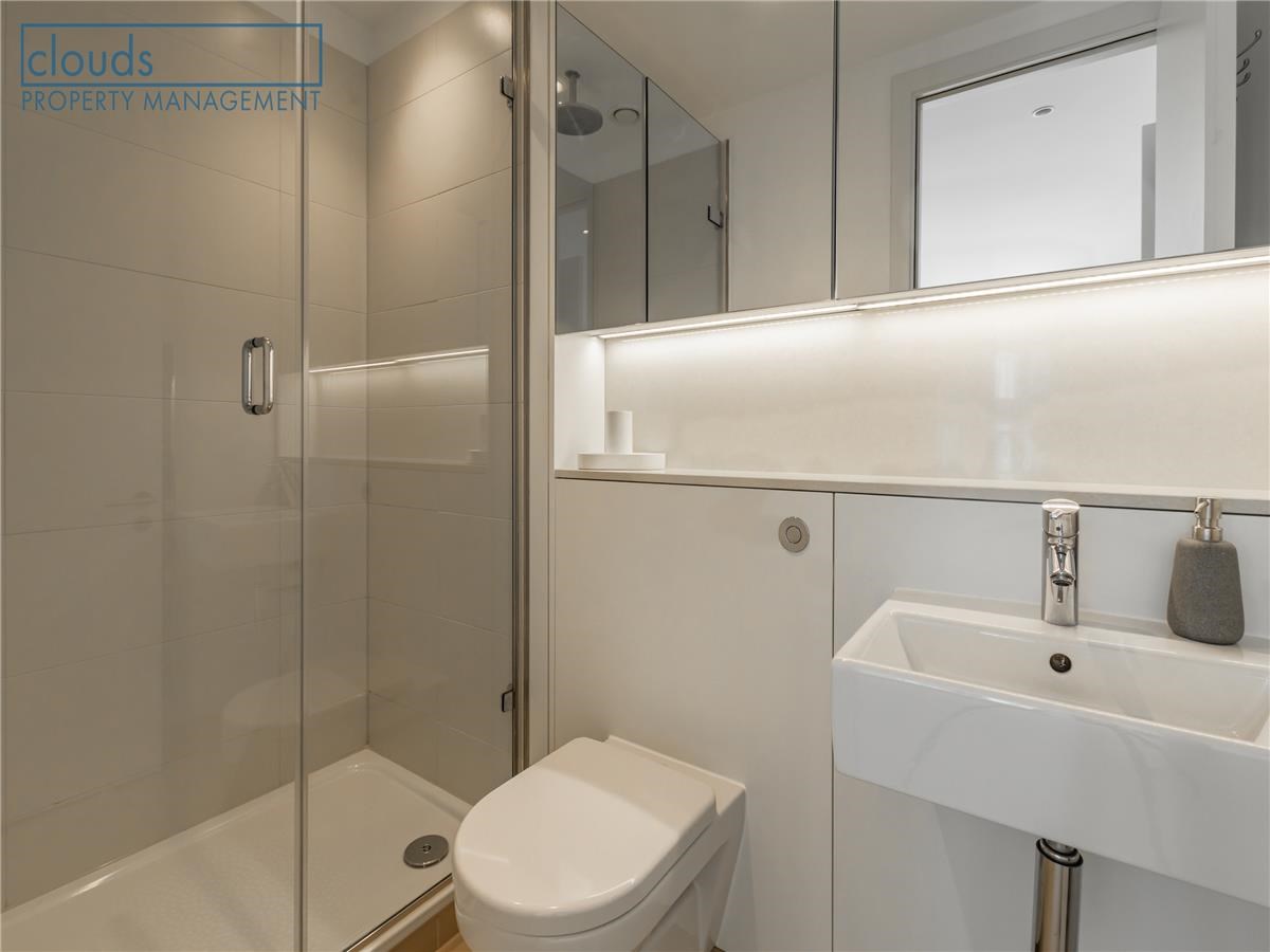 The accommodation comprises a shared lobby with lift to all floors. Internally, there is an entrance hall which allows access to each room. The main living area hosts an open plan sitting/dining/kitchen which offers the perfect entertaining space with floor to ceiling windows filling the room with natural light. The kitchen is fitted with modern high gloss units, integrated appliances, electric cooker and a galley island. The first bedroom, with a built-in wardrobe, also has an ensuite shower room. The second double bedroom has lots of light and also a built-in wardrobe. There is also a family bathroom with shower over the bath.