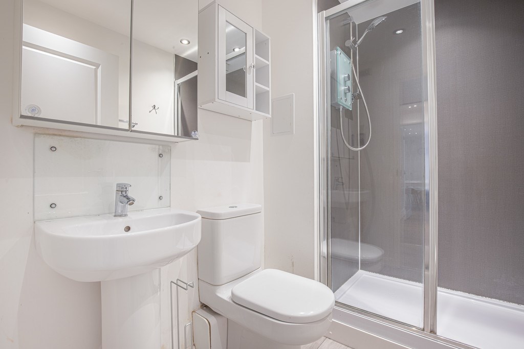 MASTER BEDROOM The generously sized master bedroom offers a calm and comfortable retreat, with ample space for a double bed and additional bedroom furniture. Neutral décor and soft flooring enhance the sense of comfort, while natural light creates a bright and relaxing atmosphere.The en-suite benefits from a modern walk-in shower unit, a free-standing toilet, and a contemporary sink. Finished with striking dark grey panelled surrounds and durable vinyl flooring, the space offers a stylish and practical private bathroom, perfectly suited to the master bedroom.