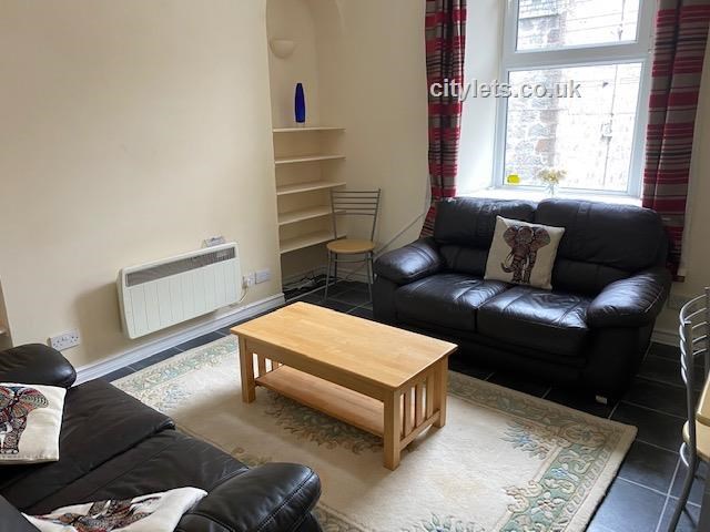 Situated on the first floor, the bright and spacious hallway leads to all rooms. The bright living/dining area has a leather sofa suite, wooden coffee table atop a plush rug and a dining table and chairs. There is a galley kitchen with Formica worktops and white units, which has all the usual appliances including a fridge freezer, gas hob, oven and a washing machine. The double bedroom has a free standing wardrobe and a wooden chest of drawers. The bathroom has a shower over bath, with a funky shower curtain and several shelves for storage. There is further storage space in the utility cupboard.