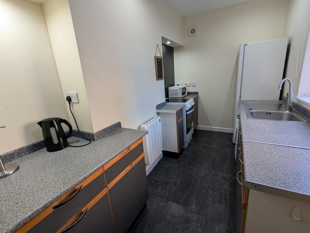 Situated on the ground floor, we are pleased to offer for lease this one double bedroom property situated centrally in Aberdeen. The spacious living room has two leather sofa's with a coffee table and tv stand. There is a galley kitchen with granite grey units, which has all the usual appliances including a fridge freezer, cooker, oven, microwave and a washing machine. The bright double bedroom has ample fitted wardrobes and side tables. The bathroom has a shower over bath.