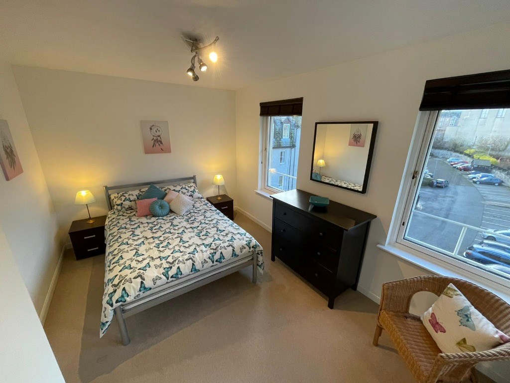 Fully furnished one bedroom top floor flat within a modern, private development. The flat comprises entrance hallway with 2 storage cupboards, lounge with floor to ceiling window, dining kitchen with fridge freezer, oven and hob, and washing machine, double bedroom with fitted wardrobe with mirrored doors and bathroom with electric shower over the bath.