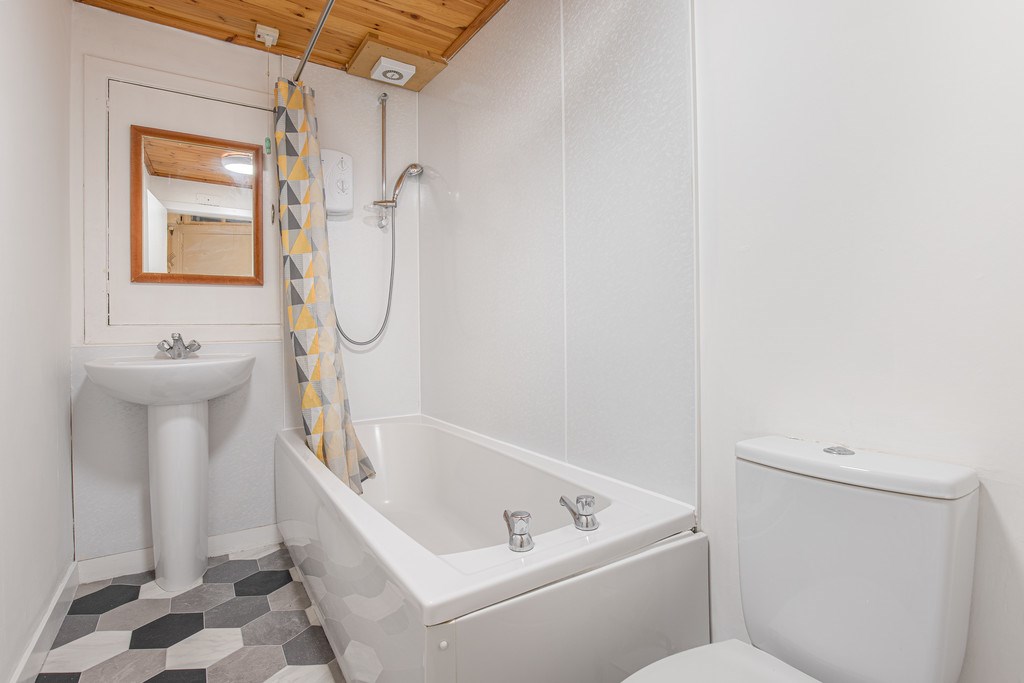 The property is fully furnished and benefits from a double bedroom, bright and airy spacious lounge with feature fireplace, kitchenette with a range of wall and base units and bathroom with 3 piece suite and shower over bath. It also offers an exclusive garden to the front of the property.