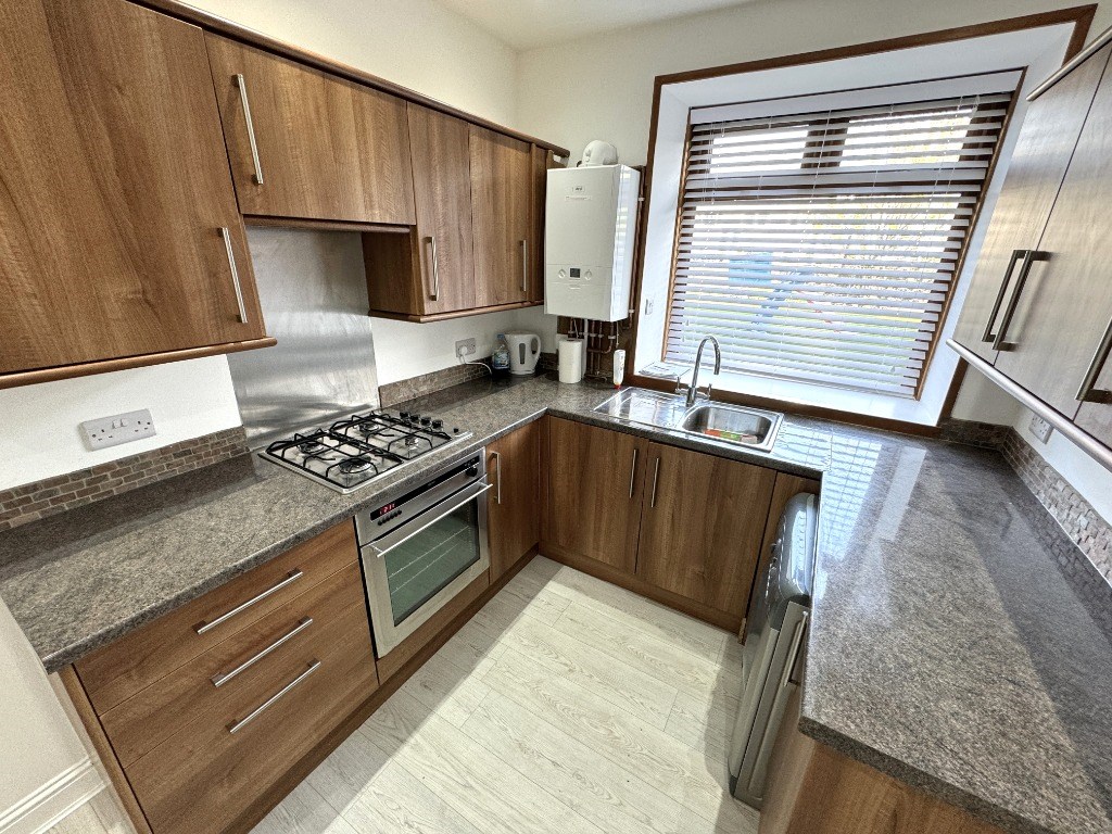 Large lounge to the rear of the property with bright and airy feel; spacious kitchen with ample storage, appliances and space for dining: 2 double bedrooms: modern shower room with white suite and large shower enclosure.